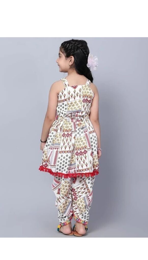 Girls’Printed Ethnic kurti & Dhoti Pant Set with Tassel Hem